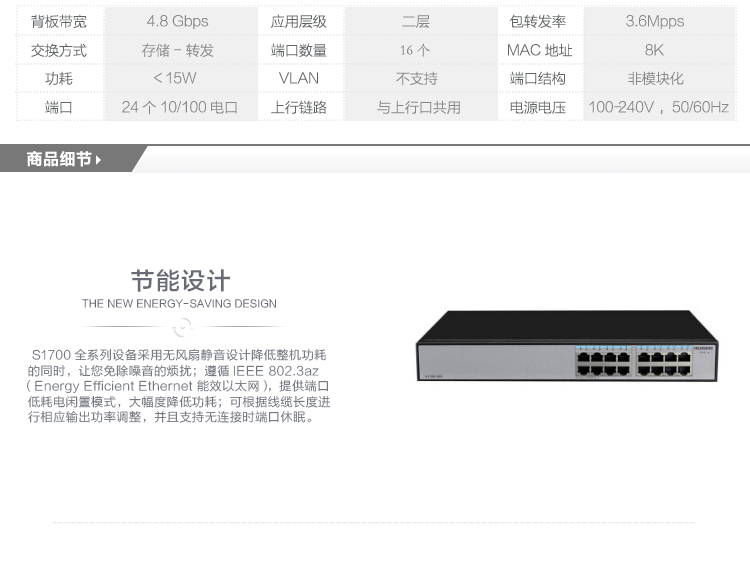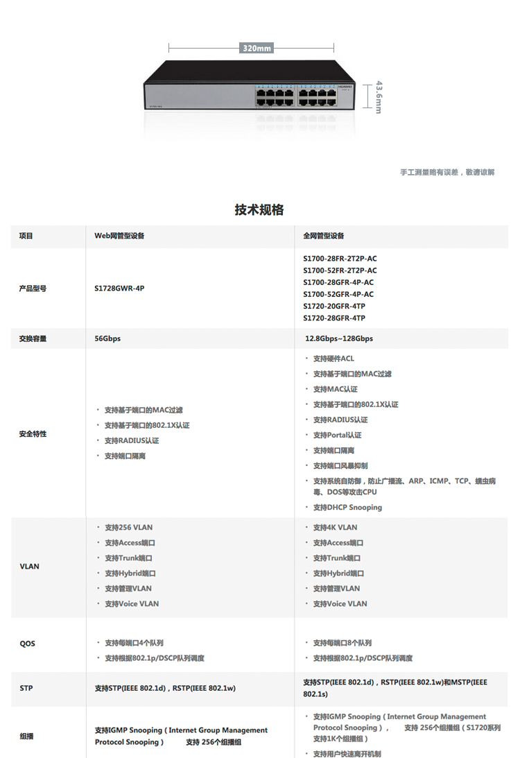 华为(HUAWEI) S5720S-52P-LI-AC 48口全千兆三层网管企业交换