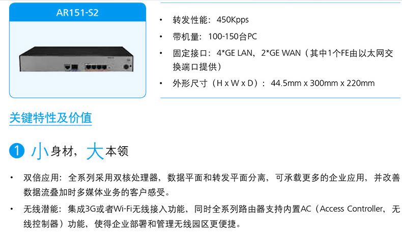 > 华为(HUAWEI)AR151-S2 双WAN口千兆企业级智能路由器