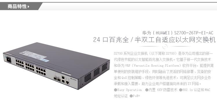 > 华为(HUAWEI)S2700-26TP-EI-AC 企业级24口百兆二层网管接入交换机