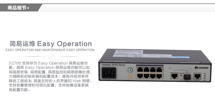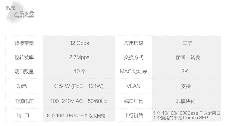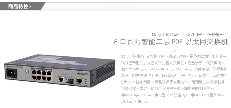 > 华为(HUAWEI)S2700-9TP-PWR-EI 企业级百兆POE网管交换机8口
