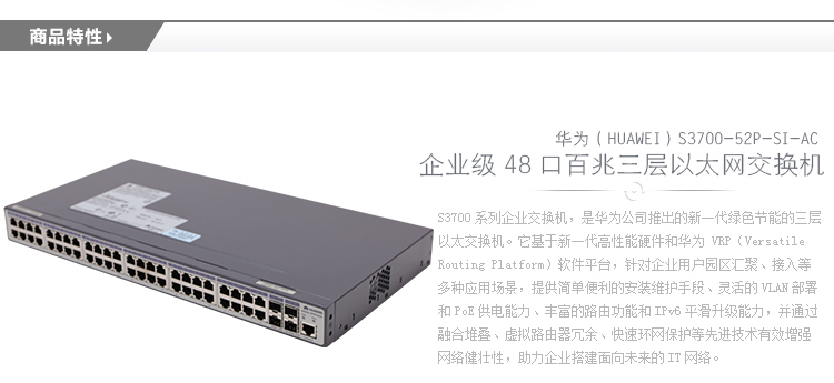 华为(huawei)S2700-52P-EI-AC (48个10/100Base-TX以太网端口,4个千兆SFP,交流电源
